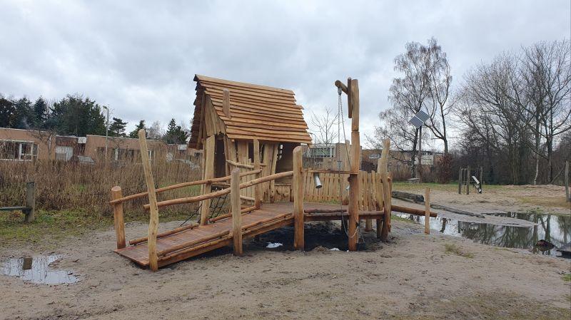 Anbau einer Rampe an Spielplatz-Häuser und die Konstruktion, inklusive Eingang zum Haus, grosszügig genüg, dass auch Kinder in Elektrorollstühlen Zugang haben. Idee im Internet gefunden.